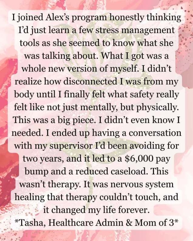 See how clients have used this work to move from overwhelm and survival mode toward greater clarity, steadiness, and capacity in daily life.